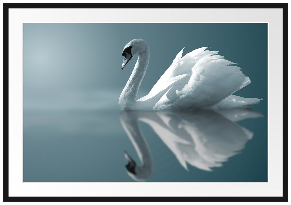Produktcode: Edler weißer Schwan auf See, im Galerie-Passepartout Bilderrahmen