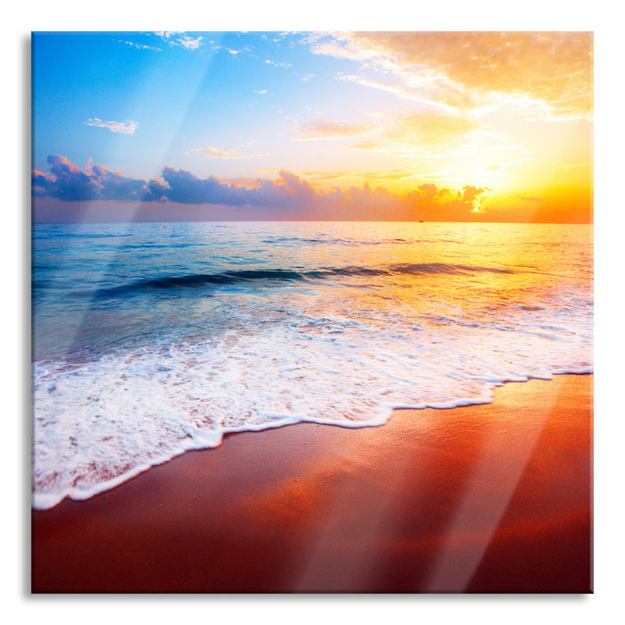 Produktcode: Sonnenuntergangsstimmung an Traumstrand, Glasbild Quadratisch