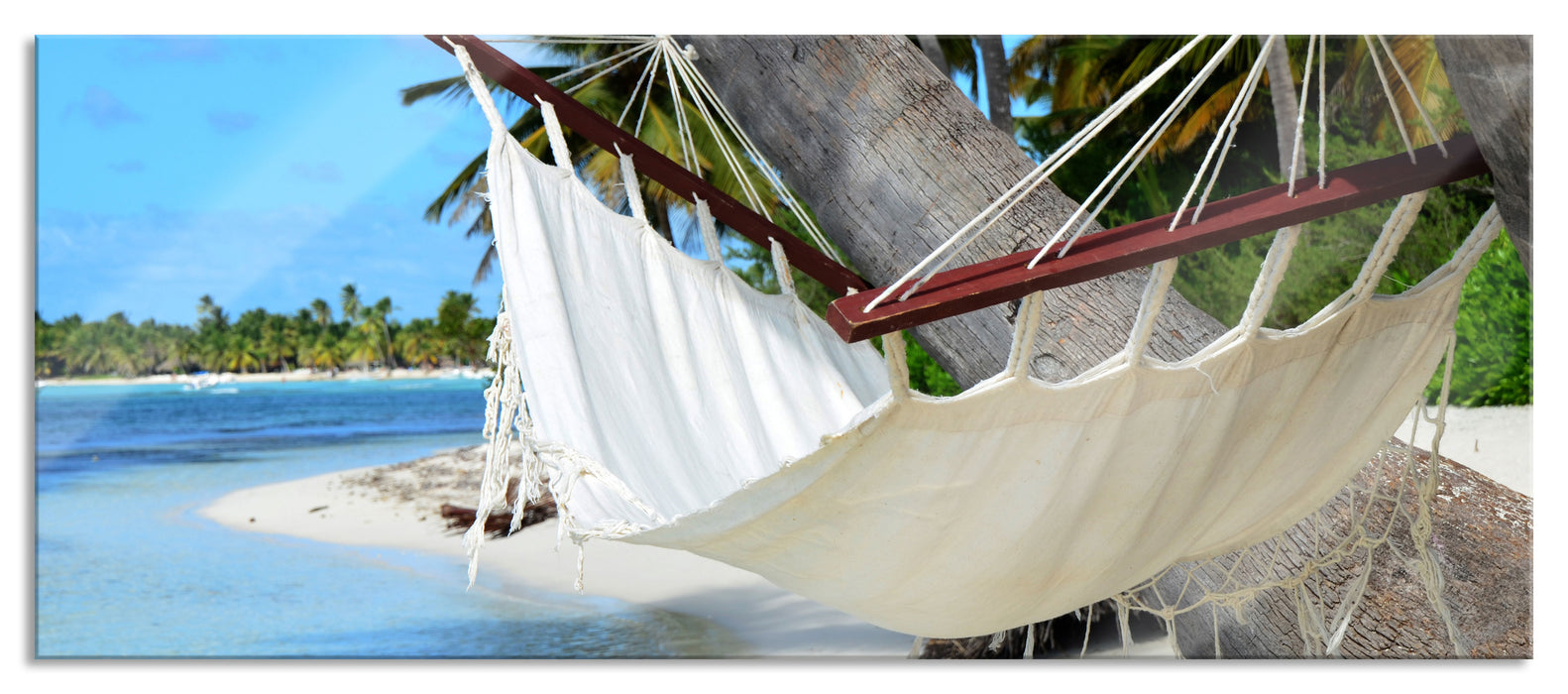 Pixxprint Bunte Papageien auf Ast, Glasbild Panorama