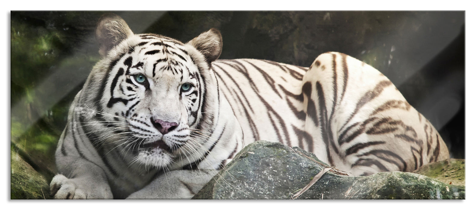 Produktnummer: Pixxprint Bunte Papageien auf Ast, Glasbild Panorama