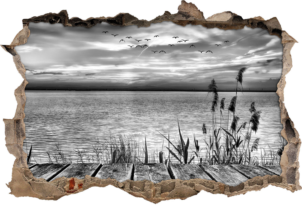 Produktnummer: Pixxprint Brücke aus Zen Steinen am Meer B&W Detail, im Schwebe-Effekt Bilderrahmen