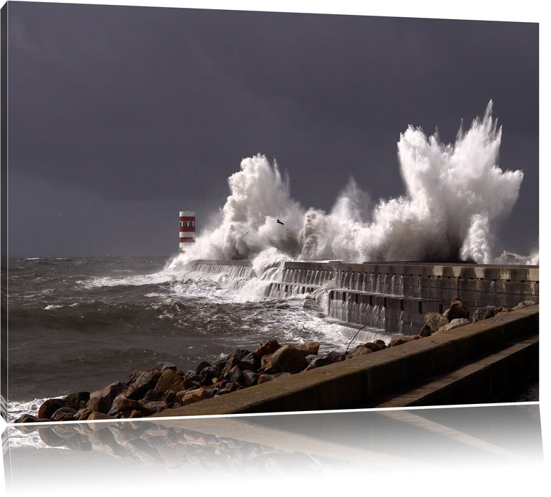 Produktnummer: Pixxprint Aufbrausende Wellen an Küste, Leinwandbild