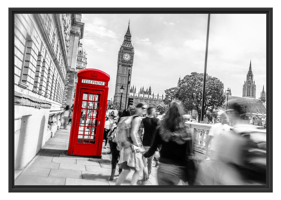 Pixxprint Typische Telefonzelle in London, im Schwebe-Effekt Bilderrahmen