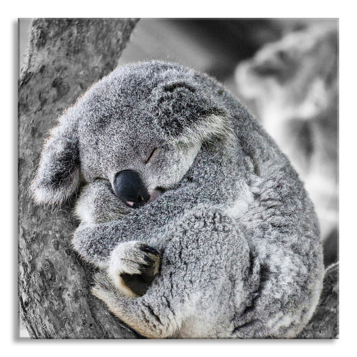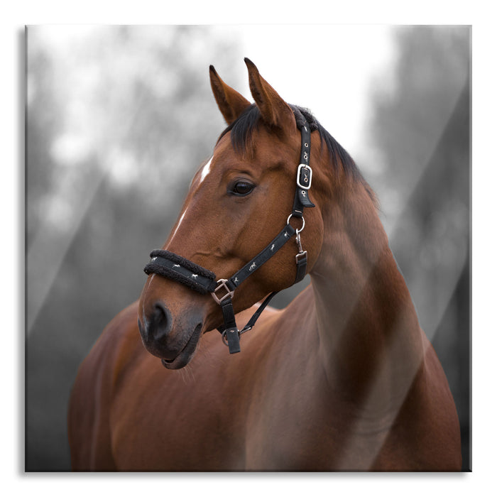 Produktcode: Nahaufnahme Kuh auf grüner Weide B&W Detail, Glasbild Quadratisch