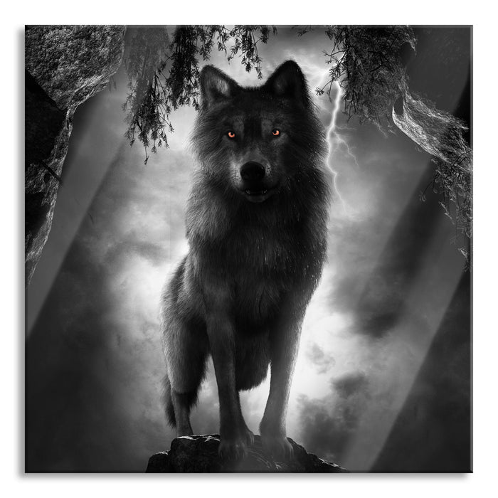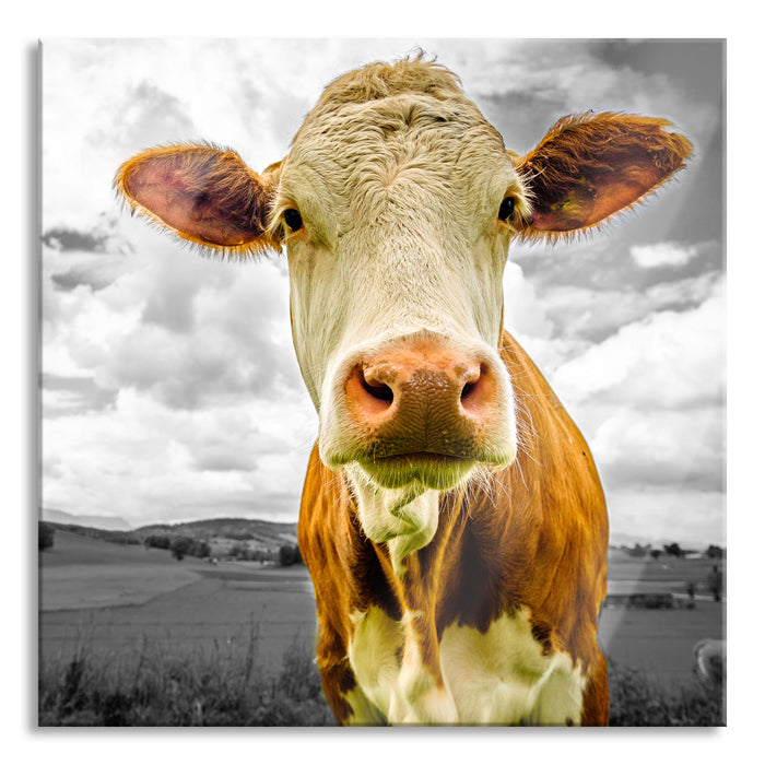 Produktnummer: Pixxprint Nahaufnahme Kuh auf grüner Weide B&W Detail, Glasbild Quadratisch