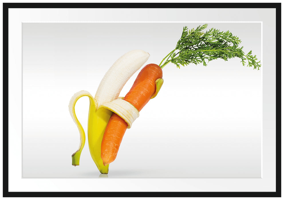 Produktnummer: Pixxprint Tanz von Banane und Mohrrübe, im Galerie-Passepartout Bilderrahmen