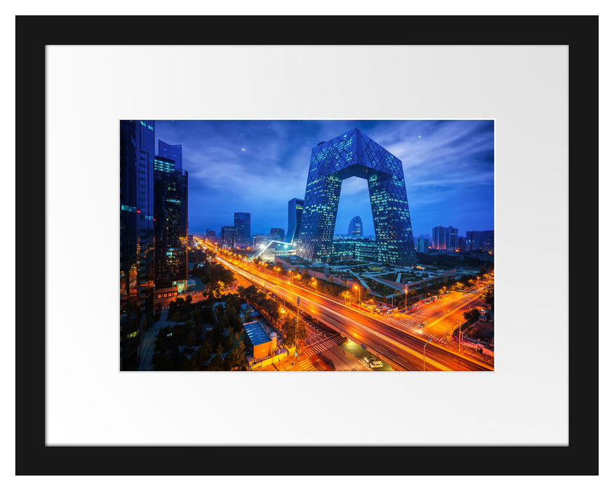 Produktnummer: Pixxprint Straßenlichter bei Nacht in Peking, im Galerie-Passepartout Bilderrahmen