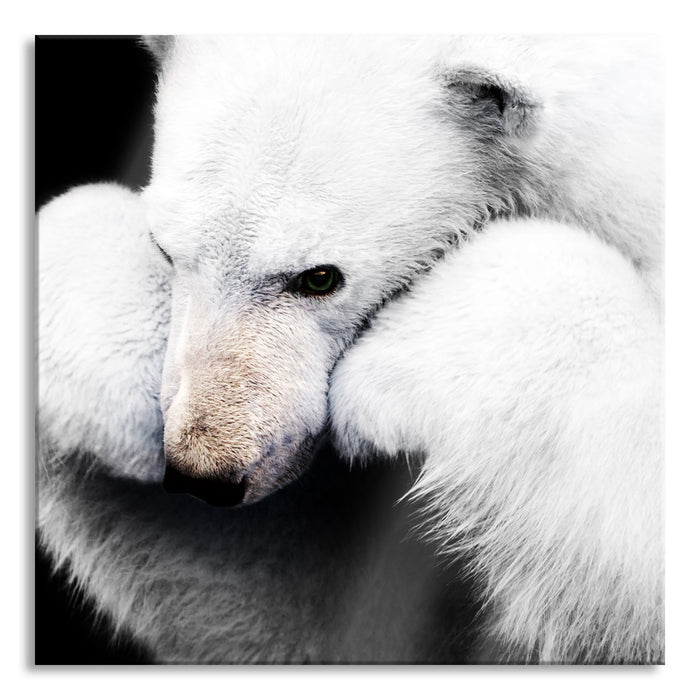 Produktcode: Frau in erotischen Dessous auf Bett B&W Detail, Glasbild Quadratisch