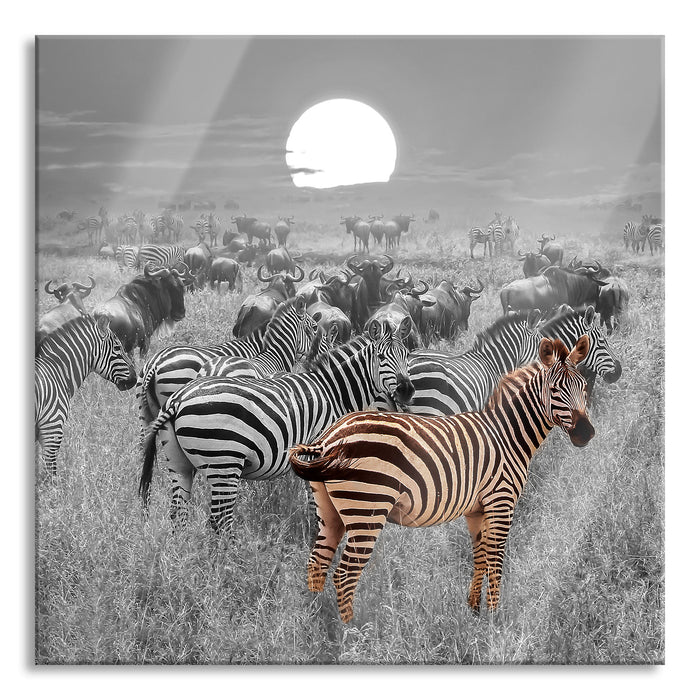 Pixxprint Frau in erotischen Dessous auf Bett B&W Detail, Glasbild Quadratisch