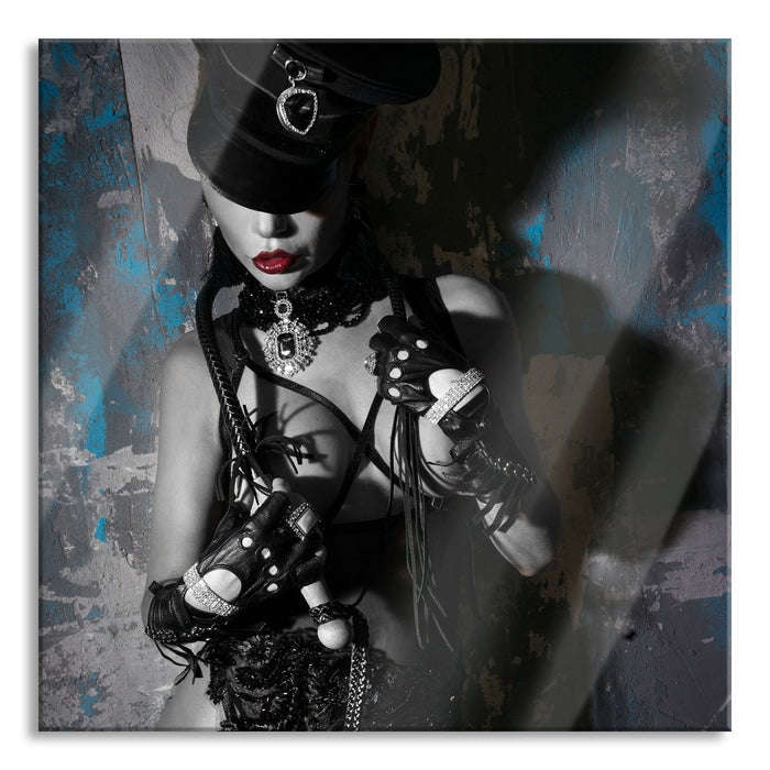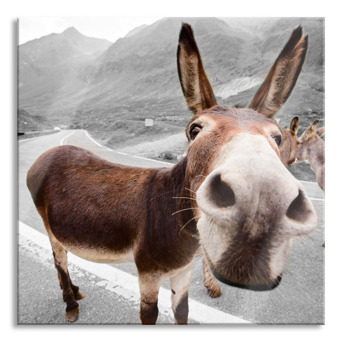 Produktcode: Geflügeltes Einhorn auf Felsen B&W Detail, Glasbild Quadratisch