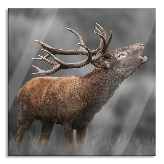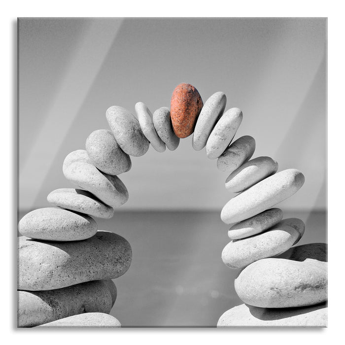 Pixxprint Geflügeltes Einhorn auf Felsen B&W Detail, Glasbild Quadratisch