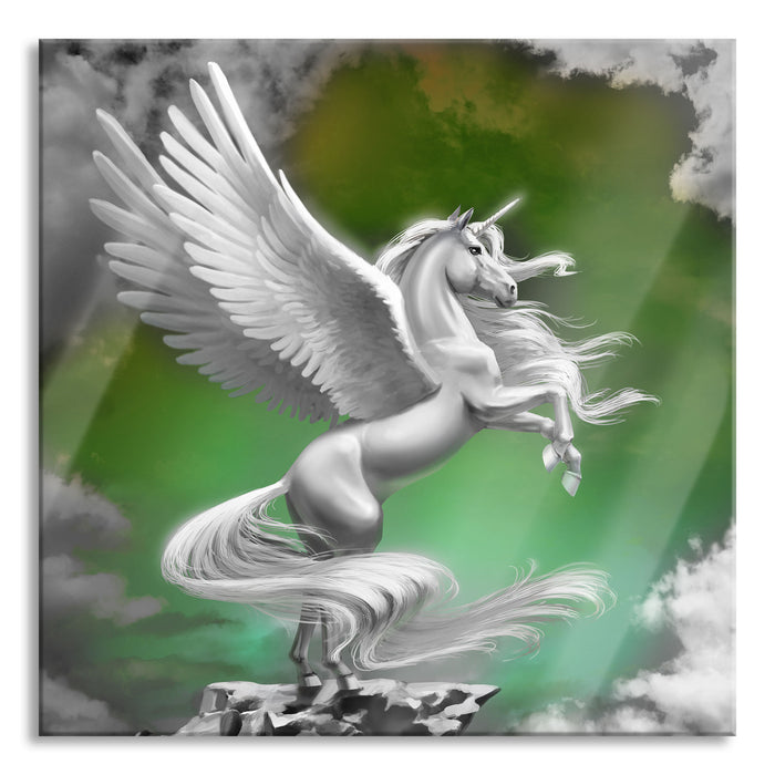 Haushalt / Pixxprint / Pixxprint Geflügeltes Einhorn auf Felsen B&W Detail, Glasbild Quadratisch verkäufe
