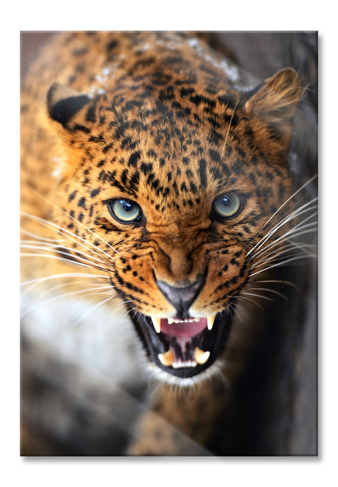 Produktcode: Fauchender Leopard, Glasbild