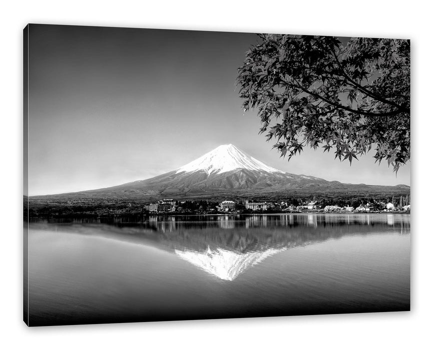 Produktcode: Berg Fujiyama mit herbstlich rotem Baum, Monochrome, Leinwandbild