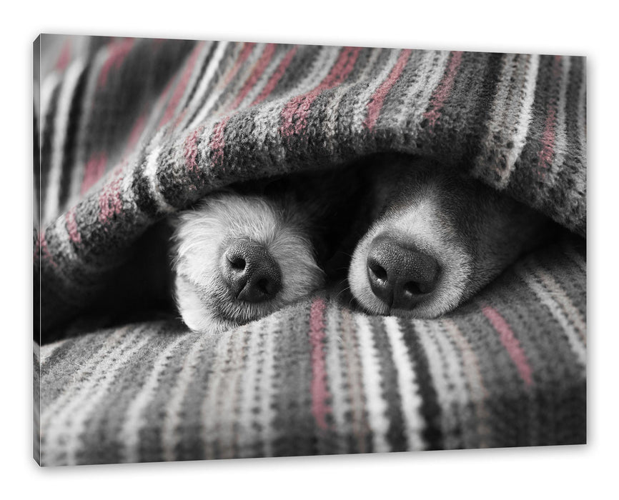 Produktcode: Hundeschnauzen unter Kuscheldecke B&W Detail, Leinwandbild