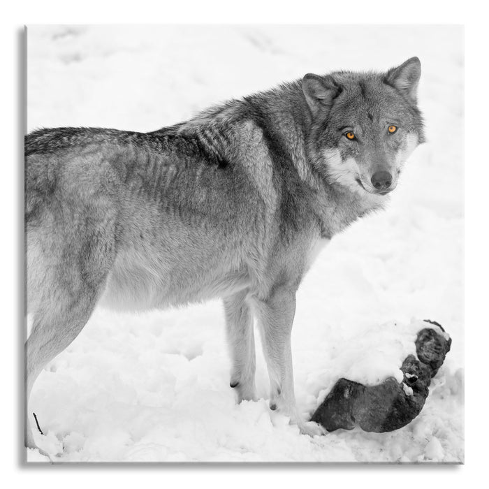 Produktcode: prächtiger Wolf im Schnee, Glasbild Quadratisch