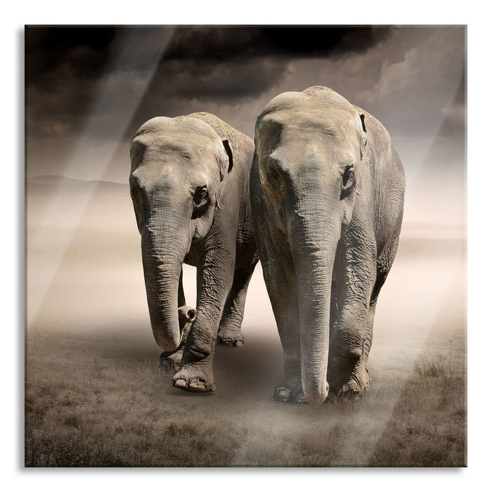 Pixxprint Zwei Rentiere im Schnee, Glasbild Quadratisch
