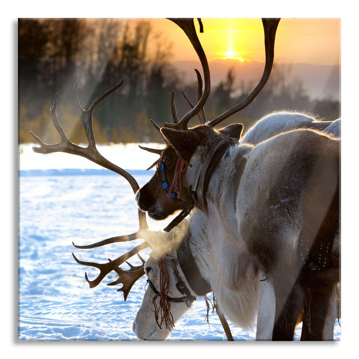 Haushalt / Pixxprint / Pixxprint Zwei Rentiere im Schnee, Glasbild Quadratisch verkäufe