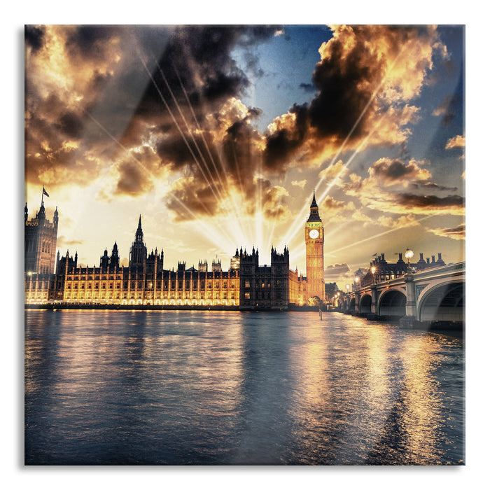 Pixxprint Wolkenkratzer bei Sonnenuntergang, Glasbild Quadratisch