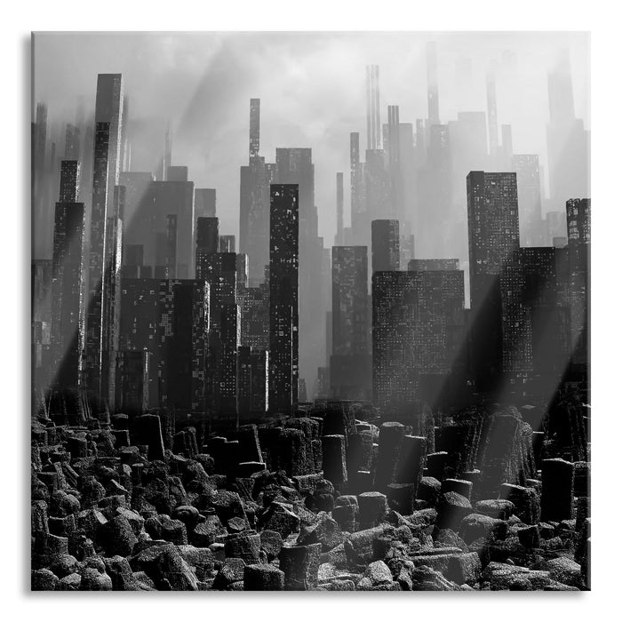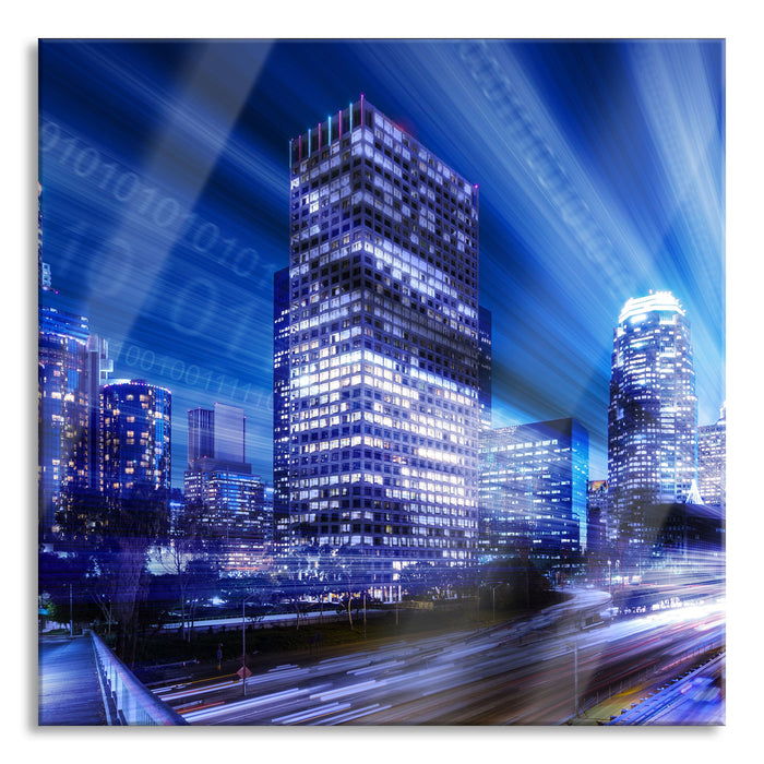 Produktcode: Wolkenkratzer bei Sonnenuntergang, Glasbild Quadratisch