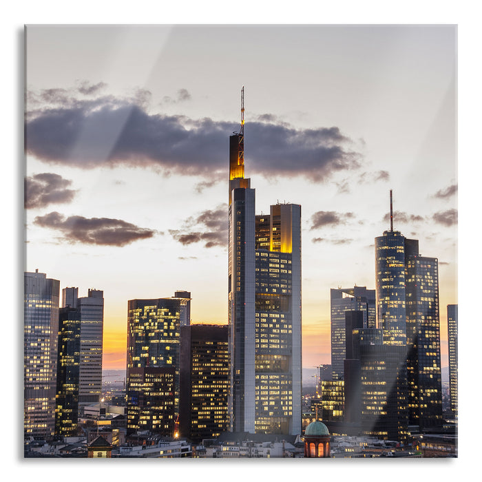 Produktnummer: Pixxprint Wolkenkratzer bei Sonnenuntergang, Glasbild Quadratisch