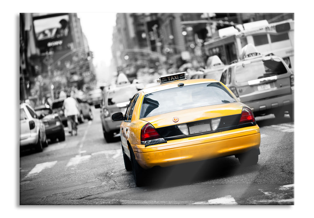Produktcode: Gelbe Taxis am Times Square in New York B&W Detail, Glasbild
