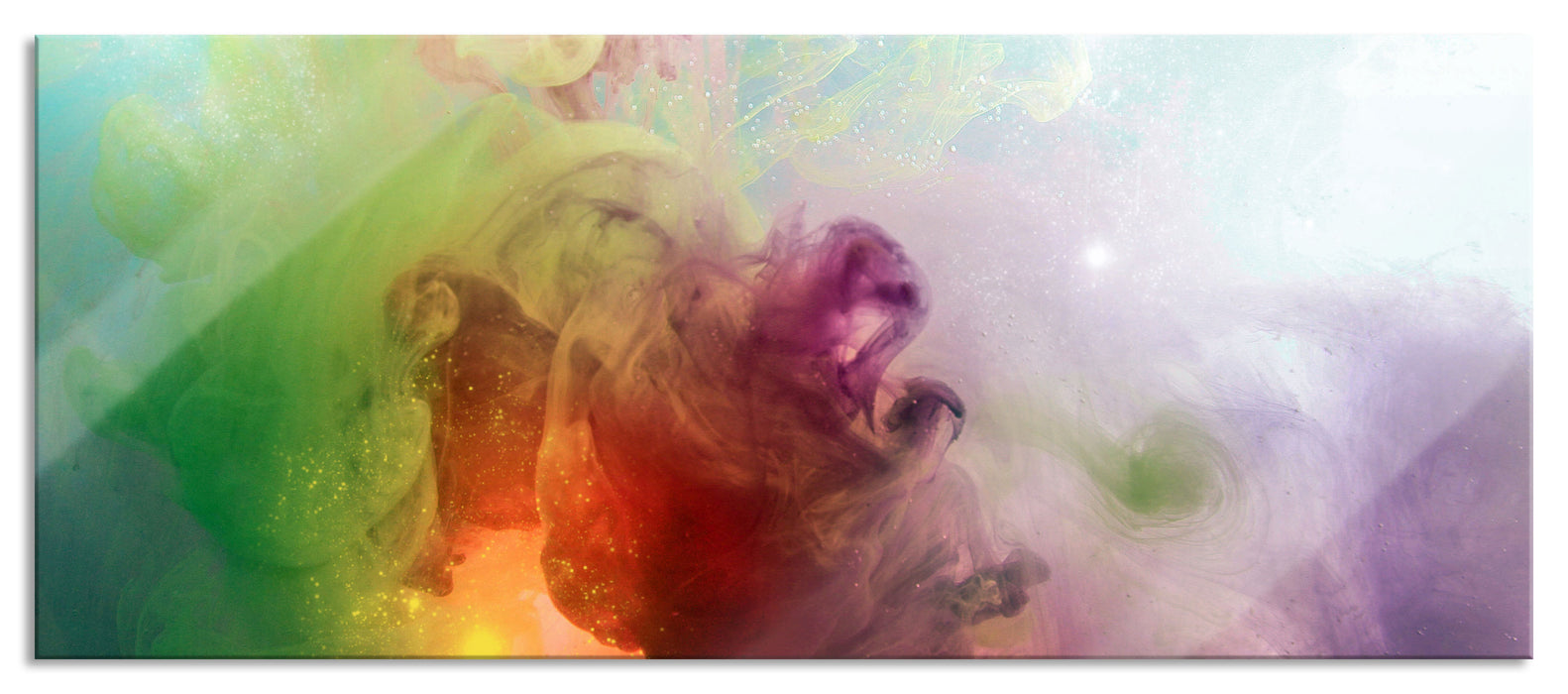 Pixxprint Zitrone im Wasserregen, Glasbild Panorama