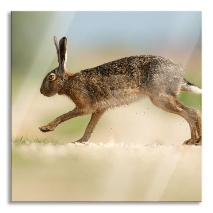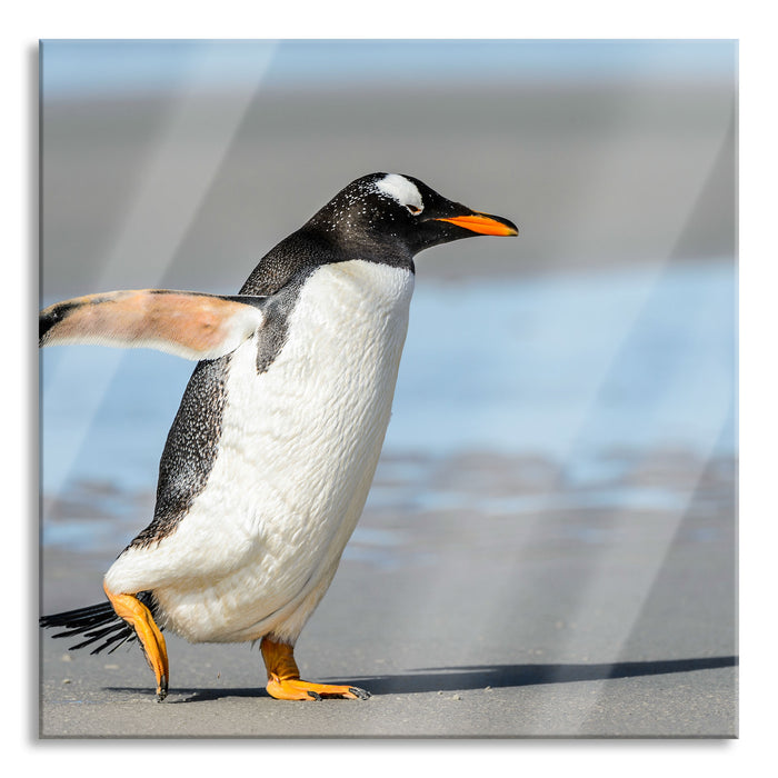 Pixxprint Pinguin am Strand, Glasbild Quadratisch