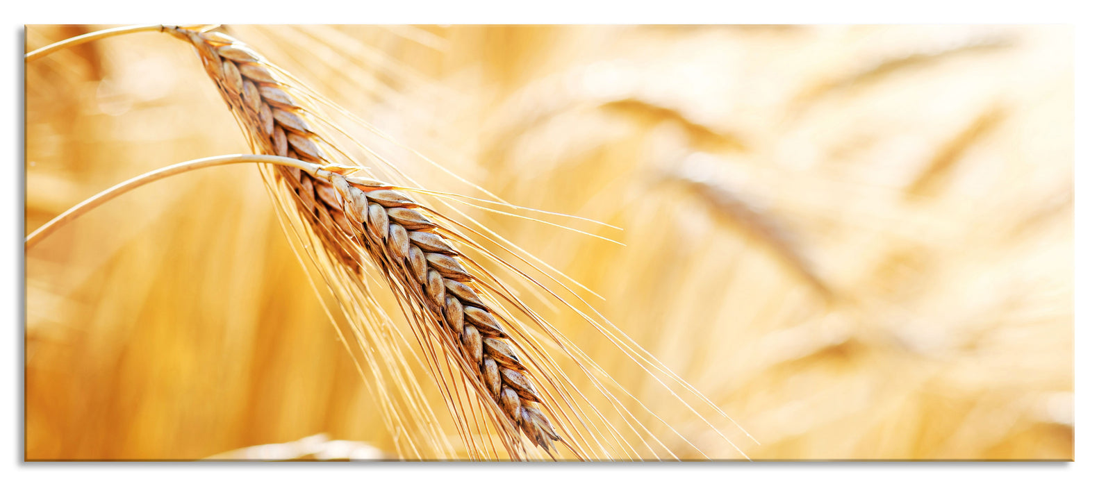 Pixxprint Feld im Sonnenuntergang, Glasbild Panorama