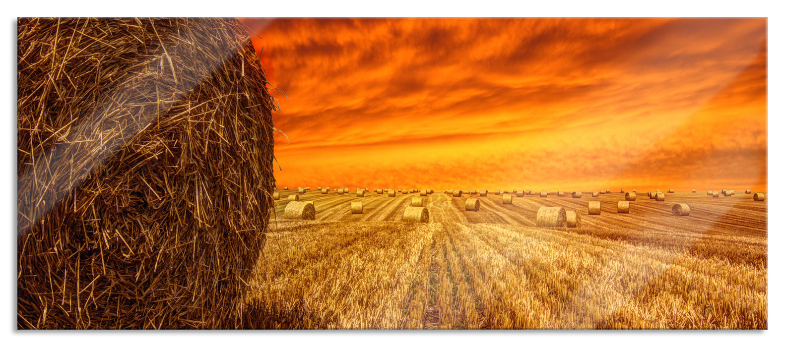Produktnummer: Pixxprint Feld im Sonnenuntergang, Glasbild Panorama