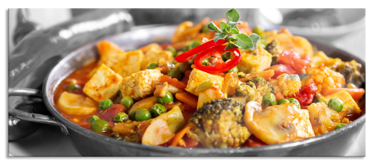 Produktnummer: Pixxprint Appetitliche Fleischpfanne, Glasbild Panorama