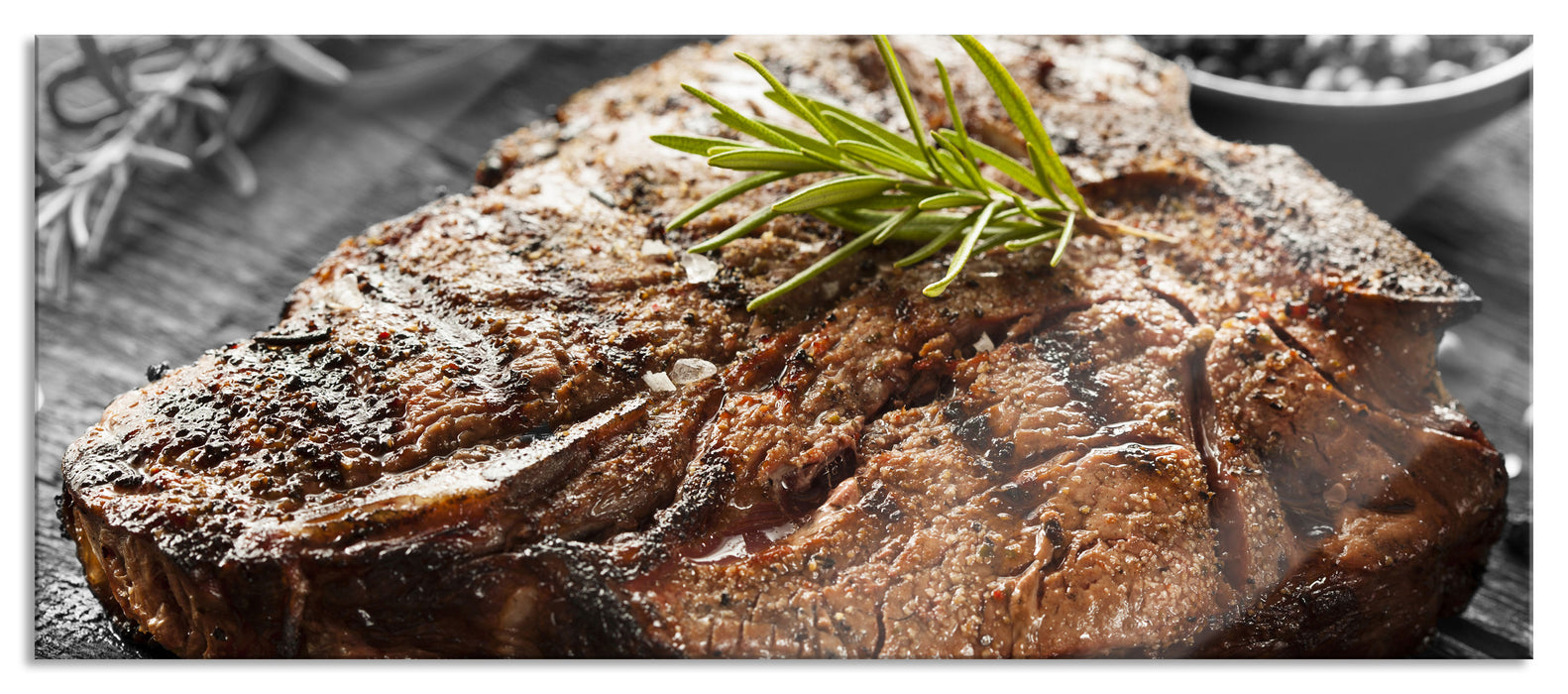 Haushalt / Pixxprint / Pixxprint Appetitliche Fleischpfanne, Glasbild Panorama verkäufe